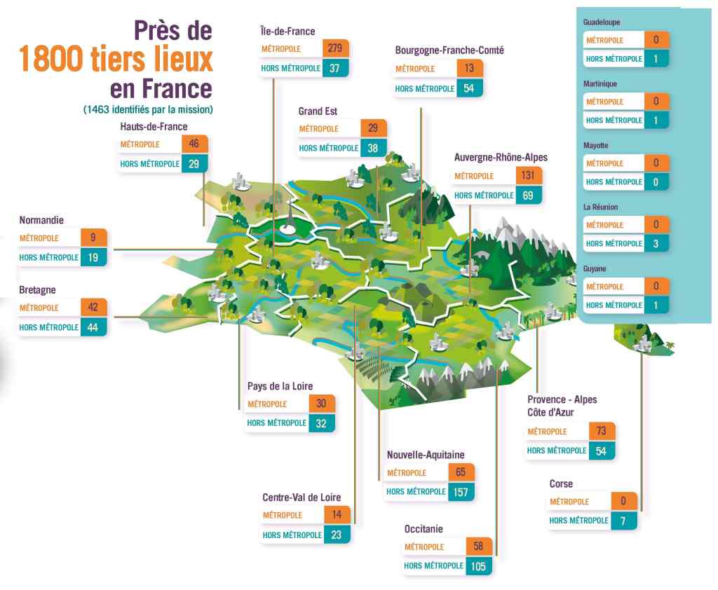 Qu’est ce qu’un tiers-lieux ? Les tiers lieux sont » destinés à être des espaces physiques ou virtuels de rencontres entre personnes et compétences variées qui n’ont pas forcément vocation à se croiser. Mot chapeau au premier abord pour rassembler sous une même et grande famille les espaces de coworking, les FabLab, les HackerSpace, les Repair’Café, les jardins partagés et autres habitats partagés ou entreprises ouvertes, le « Tiers Lieu » est un endroit où l’on pense ces singularités nécessaires à condition qu’elles soient imaginées et organisées dans un écosystème global ayant son propre langage pour ne plus être focalisé sur des lieux et des services d’infrastructure, mais vers l’émergence de projets collectifs permettant de co-créer et conserver de la valeur sur les territoires » ( définition de Movilab).