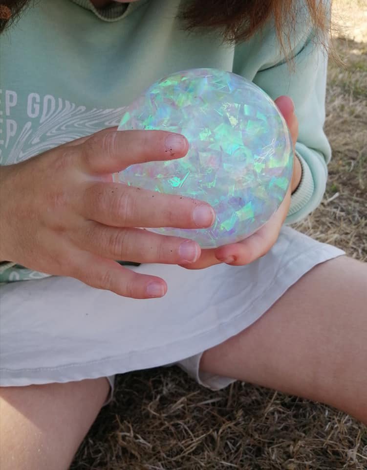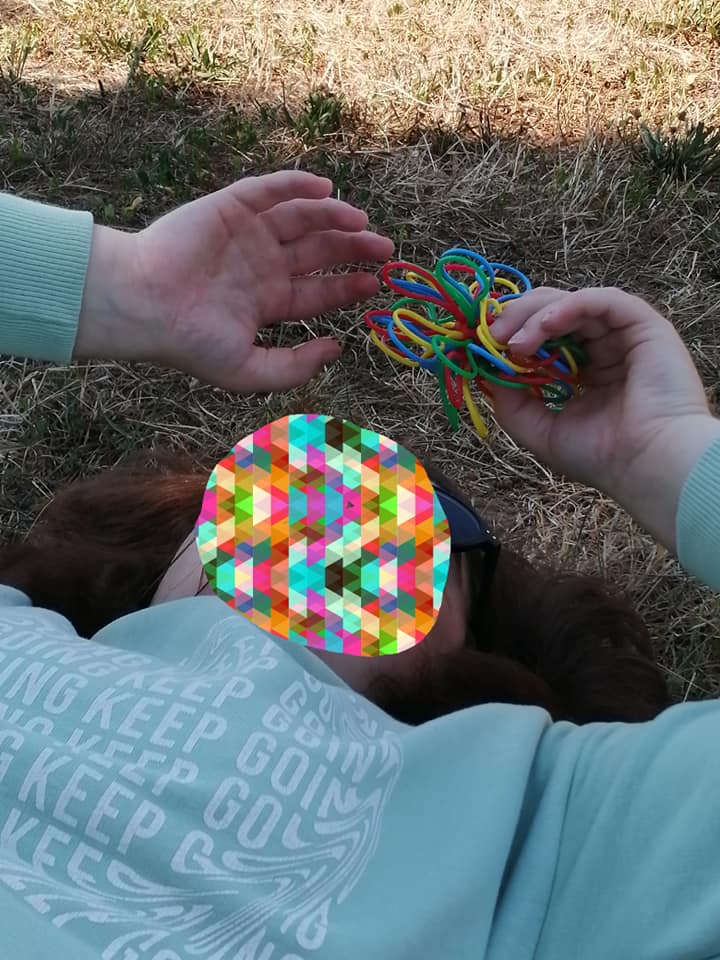 10 août 2020: Manipulation balles sensorielles Hoptoys ( balle à grains, balle ruban, balle à billes multicolores, balles lumineuses, balle looping) Lizenn, 14 ans, syndrome Cornelia de Lange.