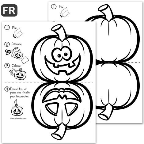 BRICOLAGE DECO (outils offerts ameliepepin.com ) Voici un bricolage tout simple pour Halloween qui sert à la fois de décoration que vous pouvez suspendre. L’enfant s’exerce à plier une feuille en deux, à découper et à colorier. L’aide d’un adulte sera peut-être nécessaire pour la dernière étape, soit de poinçonner la citrouille pour enfiler une ficelle. Les étapes sont illustrées sur la feuille. ![]() https://www.ameliepepin.com/fr/documents/e75c6c0b-65ff-412c-adc0-59c0a20e5d50 ![]() https://www.ameliepepin.com/fr/documents/c258c609-9491-4584-b6d9-163fc947a83d ![]() https://www.ameliepepin.com/fr/documents/6e3f928a-5608-4da3-ad17-ba38e0df701d |