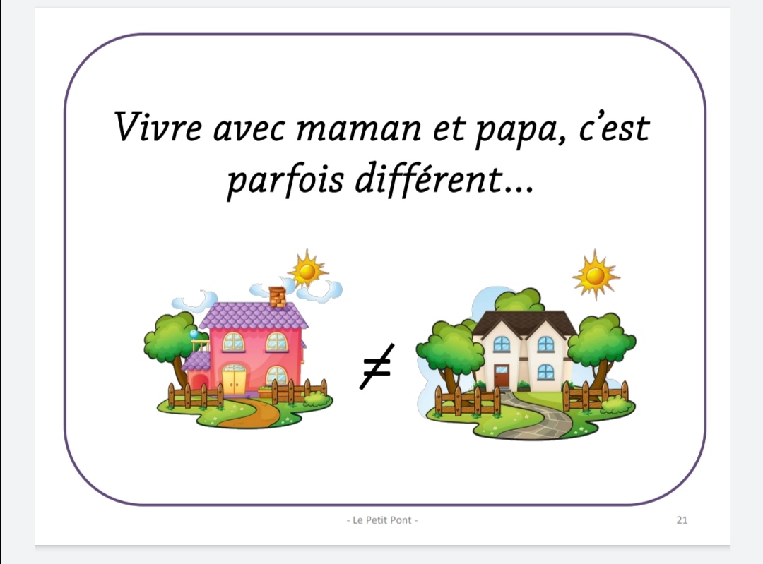 SCENARIO SOCIAUX pour parler de la séparation avec l’enfant ( 4 à 8 ans) ( Outil offert par l’association Le petit Pont ) ![]() Un PDF de 32 pages réunissant 3 scénarios sociaux: – J’ai maintenant deux maisons – Vivre avec mes parents séparés – Vivre avec maman et papa c’est parfois différent ![]() ![]() ![]() A télécharger ici: http://www.petitpont.org/medias/doc/livret%20sc-soc-final3.pdf |