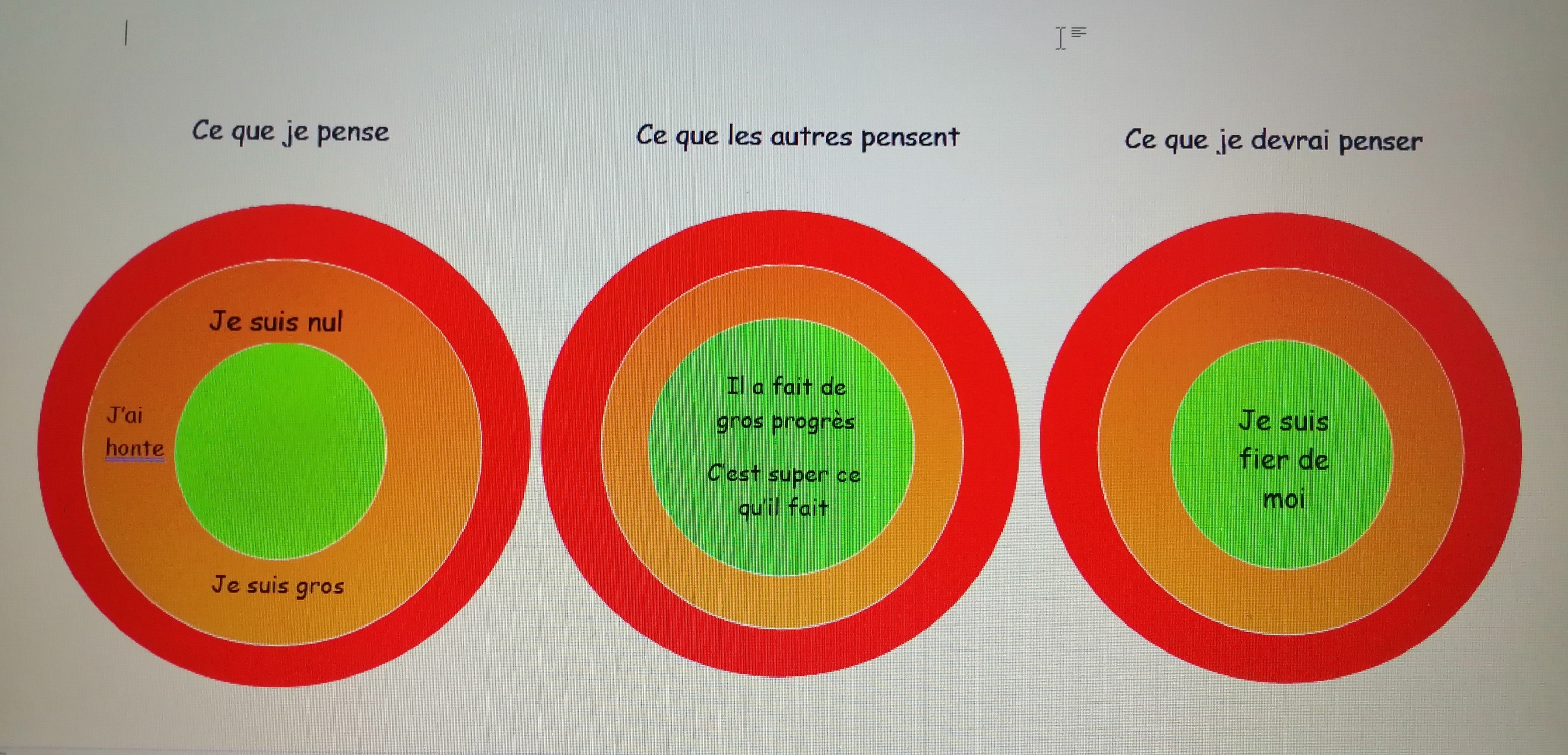 LA CIBLE ANTI- STRESS pour personnes autistes ou autres publics ( proposé par le site virginieeducatricelarochelle.com ) Voici des exemples de cible anti-stress en support visuel, utilisés auprès d’ adolescents autistes mais peut convenir à d’autres publics. Elles ont pour but de recentrer la pensée et de mettre à distance les pensées éloignées de la réalité entretenant le stress. ![]() cibles de stress à Télécharger ![]() cible de stress vierge à Télécharger Voici un autre exemple de cible anti-stress avec propositions d’actions régulatrices, proposée par le site ocarina.be mais vous pouvez tout à fait la créer vous-même ! ![]() https://ocarina.be/app/uploads/2020/02/Cible-anti-stress.pdf |