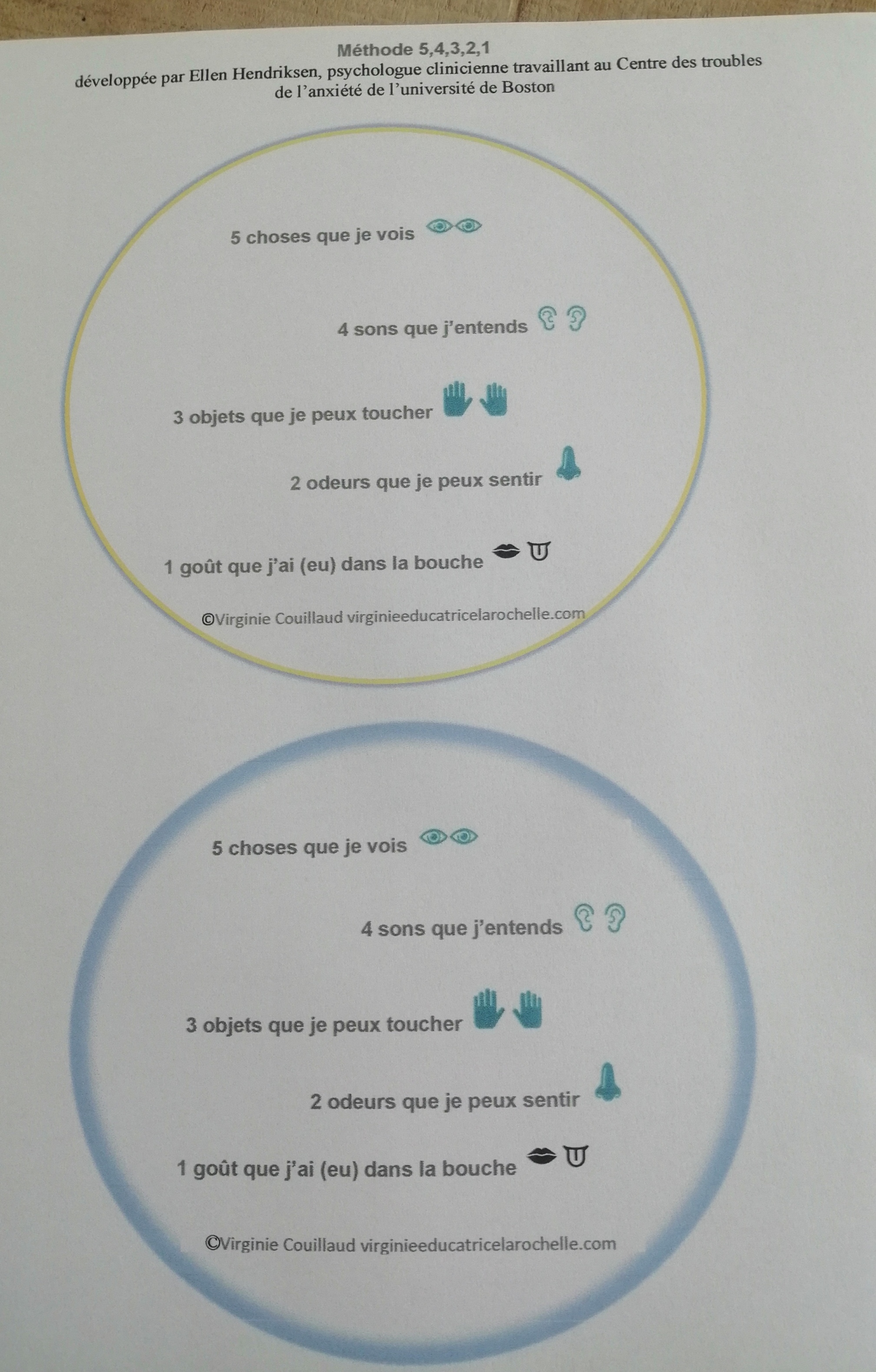 | SUPPORT ECRIT METHODE 54321 ( outil offert par virginieeducatricelarochelle.com) pour amener la personne à réaliser l’exercice. ![]() ![]() |