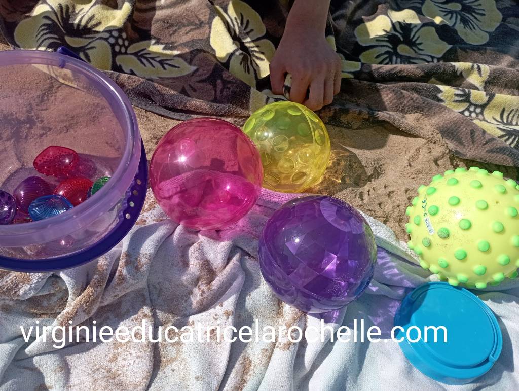 5 août 2022: Plage et balles sensorielles ce matin pour Lena.