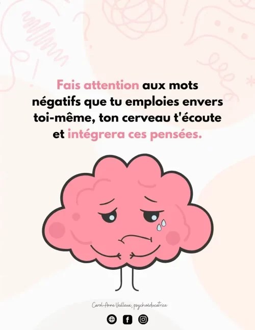 Outils pour amorcer une solution: IDENTIFIER LES PENSEES (outils offerts par soutiensolutions.com) ![]() A télécharger gratuitement après l’avoir ajouté à votre panier: https://soutiensolutions.com/produit/pensees-negatives/ ![]() A télécharger gratuitement après l’avoir ajouté à votre panier: https://soutiensolutions.com/produit/pensees-positives/ ![]() A télécharger gratuitement après l’avoir ajouté à votre panier: https://soutiensolutions.com/produit/mots-negatifs-envers-soi-meme/ ![]() A télécharger gratuitement après l’avoir ajouté à votre panier: https://soutiensolutions.com/produit/cycle-des-pensees-negatives/ |