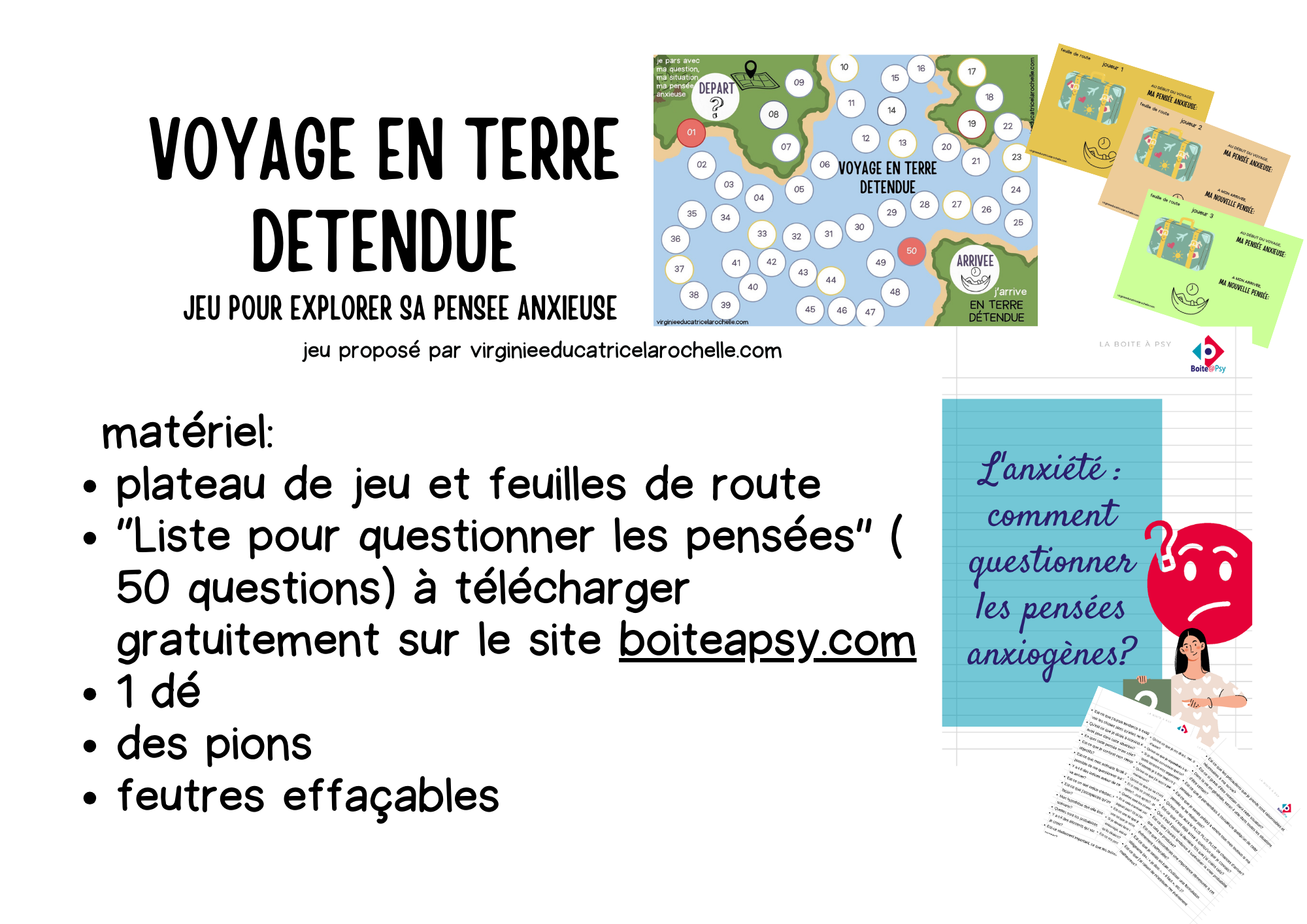 JEU « VOYAGE EN TERRE DETENDUE », Jeu pour explorer sa pensée anxieuse ( outil offert par virginieeducatricelarochelle.com) ![]() ![]() ![]() Jeu à télécharger ici:jeu-voyage-en-terre-detendue-virginieeducatricelarochelle.com_-1Télécharger |