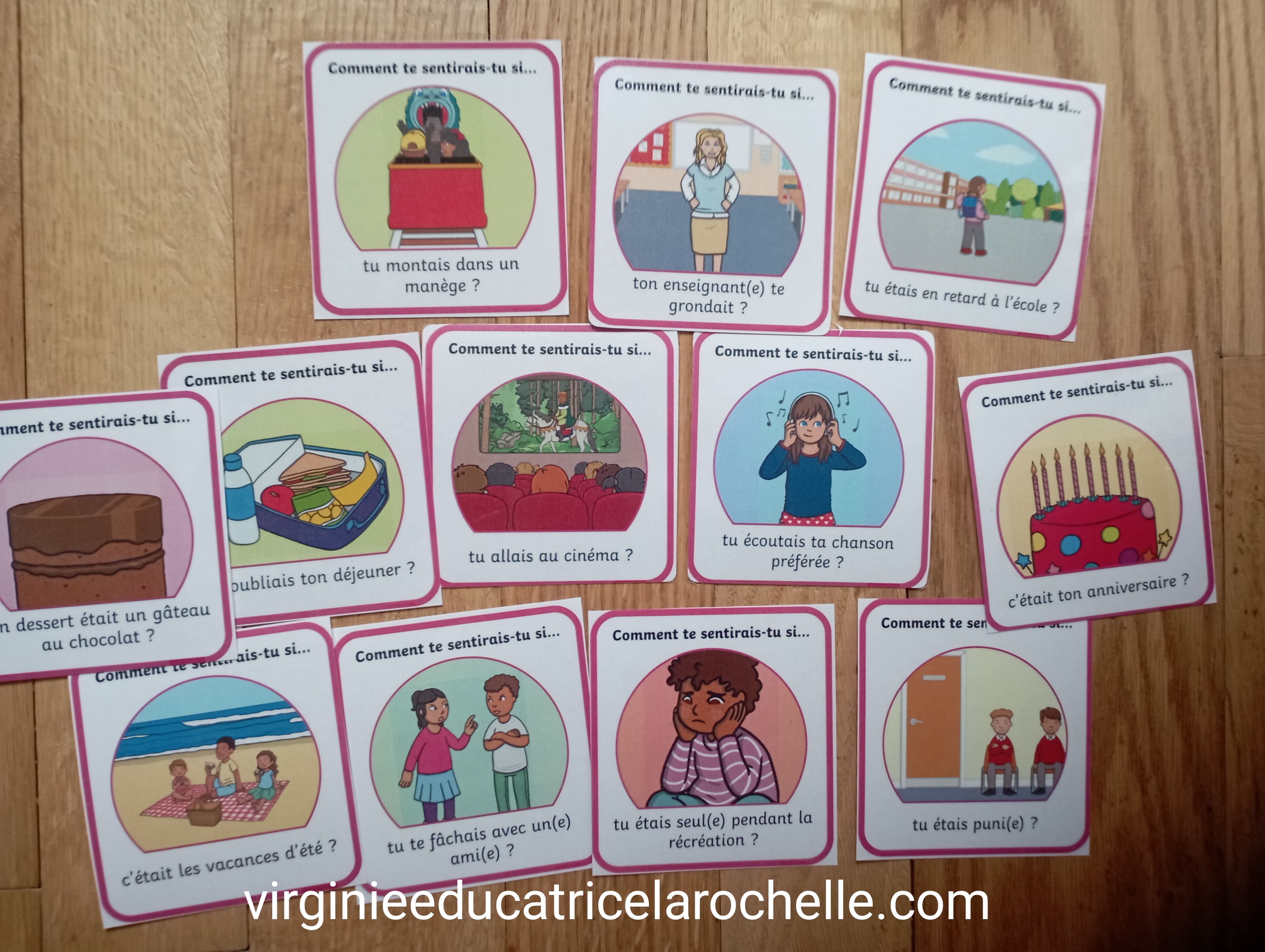 Cartes COMMENT TE SENTIRAIS-TU SI? ( outil offert par twinkl.fr) ![]() Ce jeux de cartes est inclus dans le PACK gratuit pour orthophoniste du site Twinkl à télécharger après création de votre compte: FREE! – Ressources pédagogiques pour orthophonistes – PACK (twinkl.fr) |