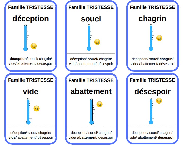 ![]() JEU DE 7 FAMILLES des émotions ( offert par scholavie.fr) ![]() A télécharger ici: https://scholavie.fr/wp-content/uploads/2023/01/scholavie_jeu-des-7-familles-des-emotions.pdf |