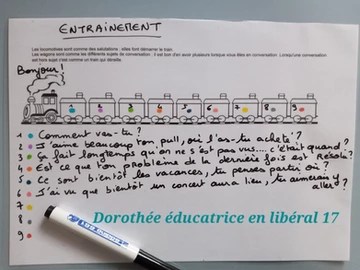 LE TRAIN DE LA CONVERSATION ( outil proposé à la création par Dorothée, éducatrice libérale educatricedomicile17.com ) ![]() https://www.educatricedomicile17.com/post/s-entrainer-%C3%A0-trouver-des-sujets-de-conversation |