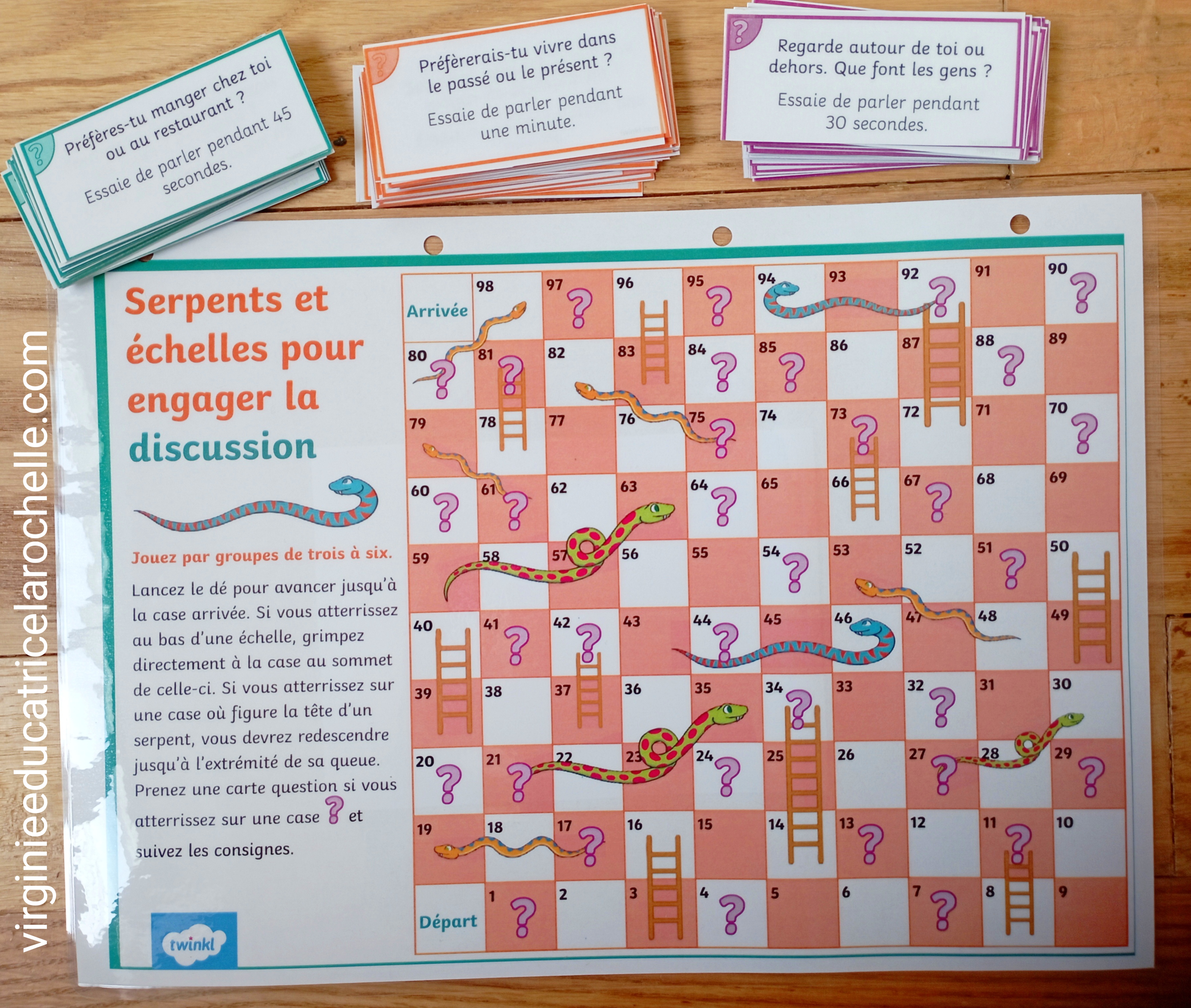 JEU de PLATEAU SERPENTS ET ECHELLES POUR ENGAGER LA DISCUSSION ( outil offert par Twinkl) Jeu intéressant pour faciliter la prise de parole. le jeu donne trois niveaux de difficultés de questions et il donne des consignes précises sur la prise de parole avec des défis de parler pendant 30 secondes à 1 minutes . A jouer en individuel ou collectif. ![]() Ressource gratuite à télécharger après avoir créé un compte: https://www.twinkl.fr/resource/jeu-de-plateau-serpents-et-echelles-pour-la-discussion-fr-fr-1676471480 |