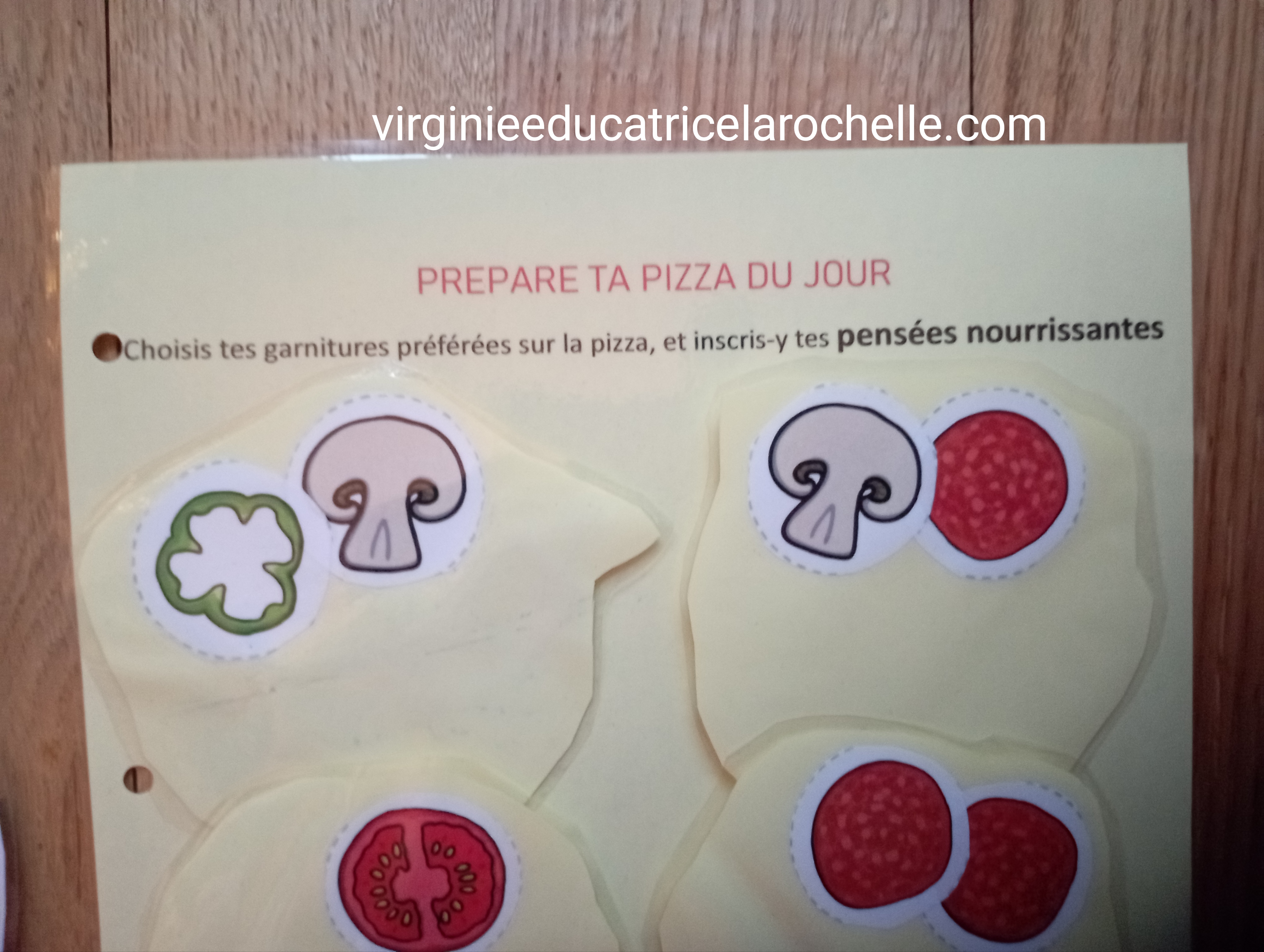 PREPARE TA PIZZA DU JOUR ( outil proposé à la création par virginieeducatricelarochelle.com) ![]() A partir du visuel de la pizza (inclus dans le PACK gratuit pour orthophoniste du site Twinkl à télécharger après création de votre compte: FREE! – Ressources pédagogiques pour orthophonistes – PACK (twinkl.fr) ) Construire un outil de création de pizza du jour avec des pensées nourrissantes: ![]() ![]() ![]() |