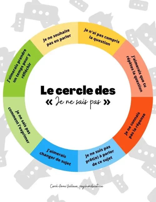 LE CERCLE DES JE SAIS PAS ( outil offert par soutiensolutions.com) ![]() A télécharger ici après l’avoir ajouter à votre panier ( gratuit) : https://soutiensolutions.com/produit/la-roue-des-je-ne-sais-pas/ |