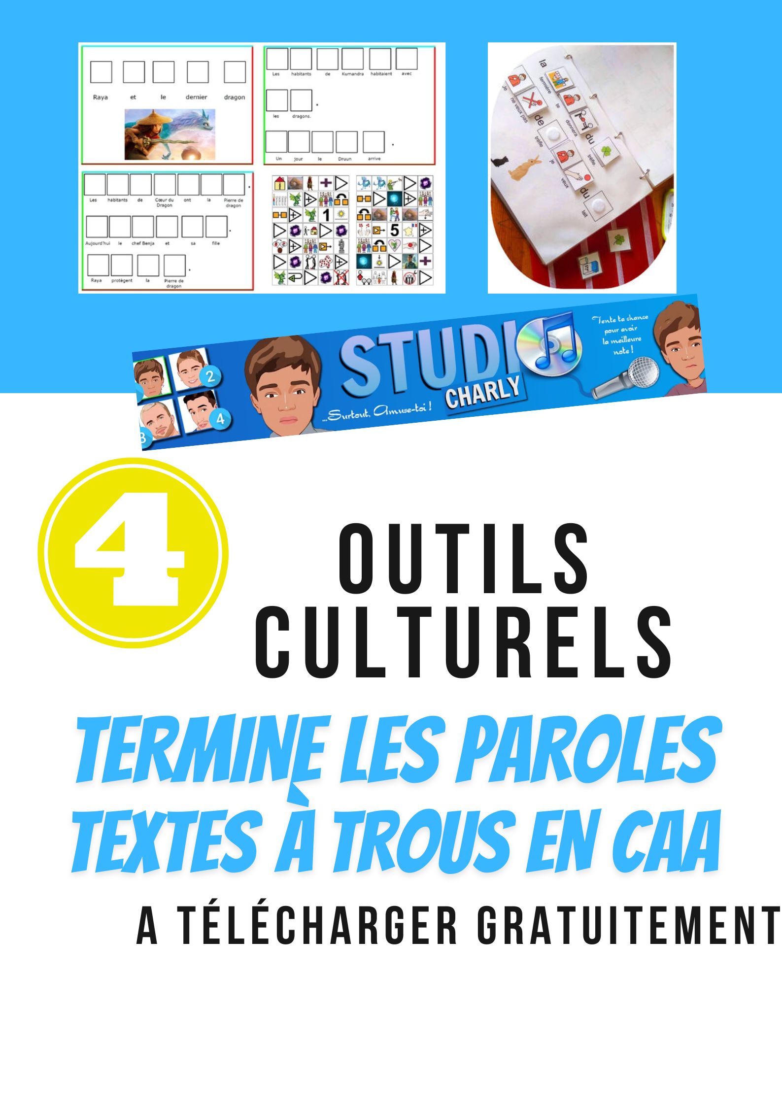 LA MUSIQUE EST UN LANGAGE UNIVERSEL. Toute musique peut être utilisée. Retrouvez ici des TERMINES LES PAROLES AINSI QUE DES TEXTES A TROUS EN CAA. Un termine les paroles EST un outil très interessant à utiliser lors d’un trajet voiture, un pique nique, un moment de transition, une occasion d’animer joyeusement un premier temps en groupe ou en introduction d’un projet plus élaboré. |