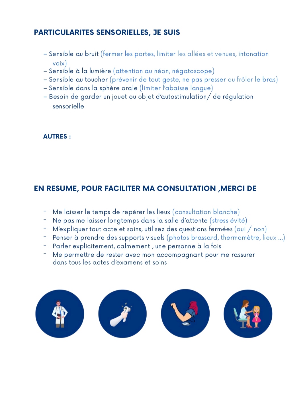 Passeport santé de la personne autiste (outil offert par l’association AGA Approche Globale Autisme) Elaboré par Approche Globale Autisme A.G.A Corinne Baculard Relecture Docteur Counil et Docteur Lucquiaud Jean Marc Bonifay Personne autiste et Président d’Autisme PACA ![]() ![]() ![]() ![]() Passeport santé de la personne autiste |