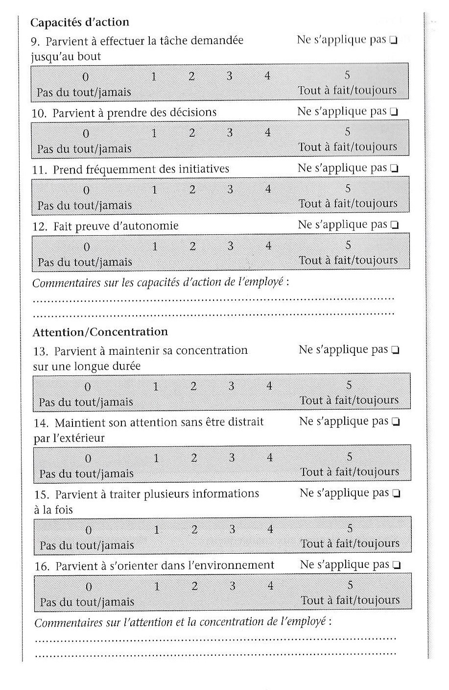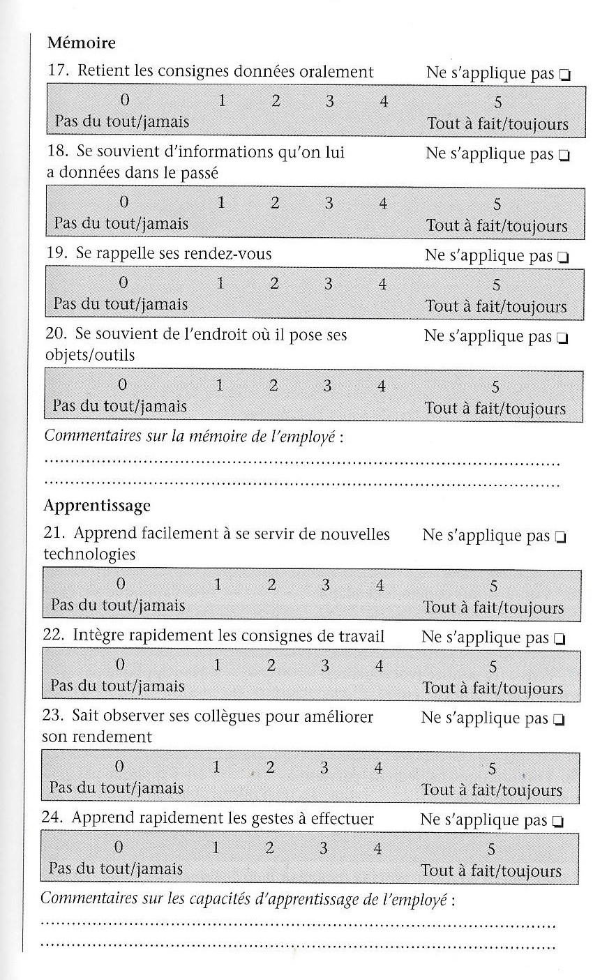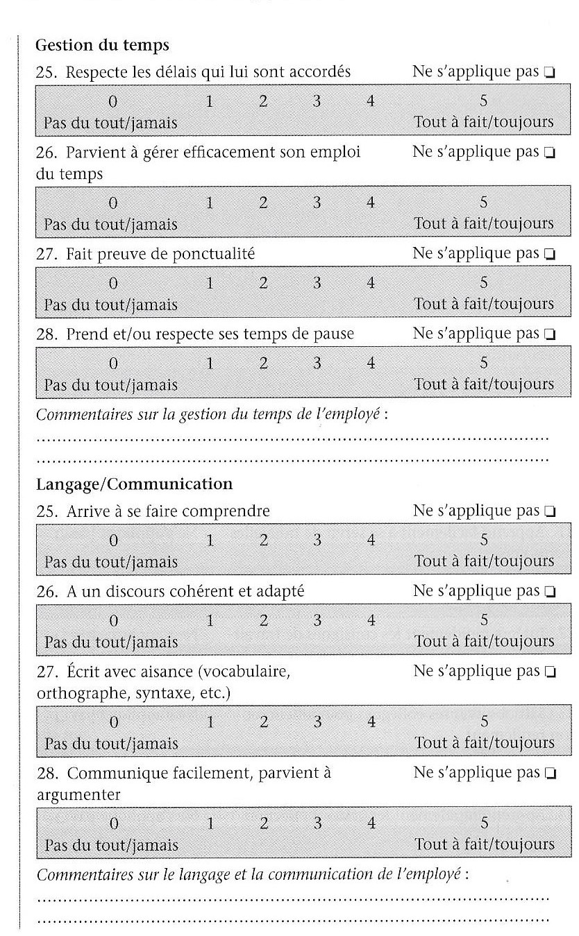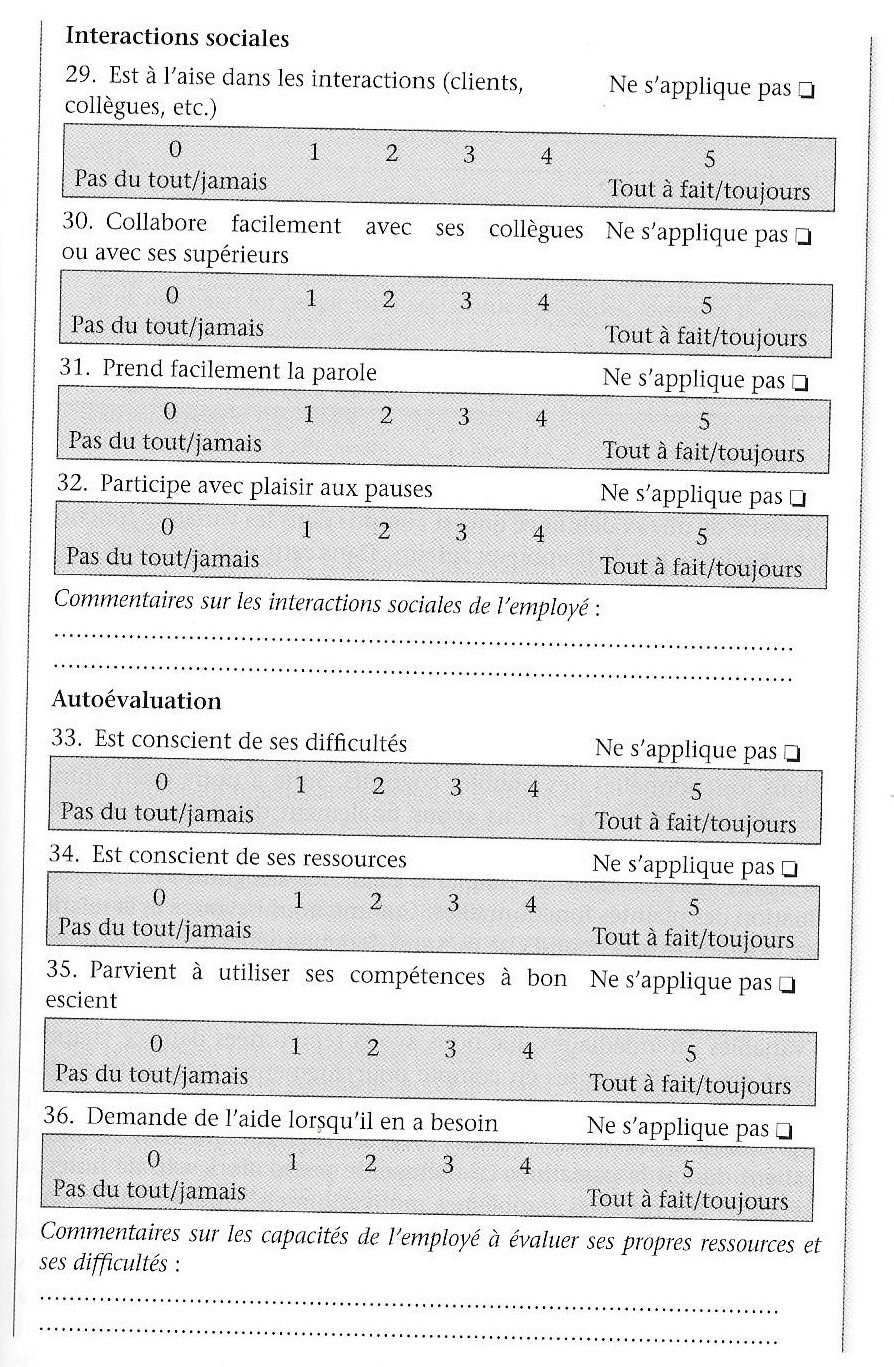 Grille IDCE – impact des déficits cognitifs dans l’emploi – évaluation milieu professionnel La grille d’évaluation IDCE ( impact des déficits cognitifs en emploi) est issue du livre « Outils de la réhabilitation psychosociale » « rédigé sous la direction du psychiatre Nicolas Franck, edition Elvesier Masson, 2016, p40-46. ![]() ![]() ![]() ![]() ![]() grille IDCE Version employeur Télécharger grille IDCE Références bibliographiques Télécharger |