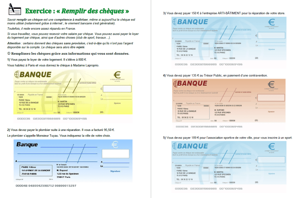 EXERCICES REMPLIR UN CHEQUE ![]() https://ddata.over-blog.com/xxxyyy/1/57/92/93/cheques.pdf |